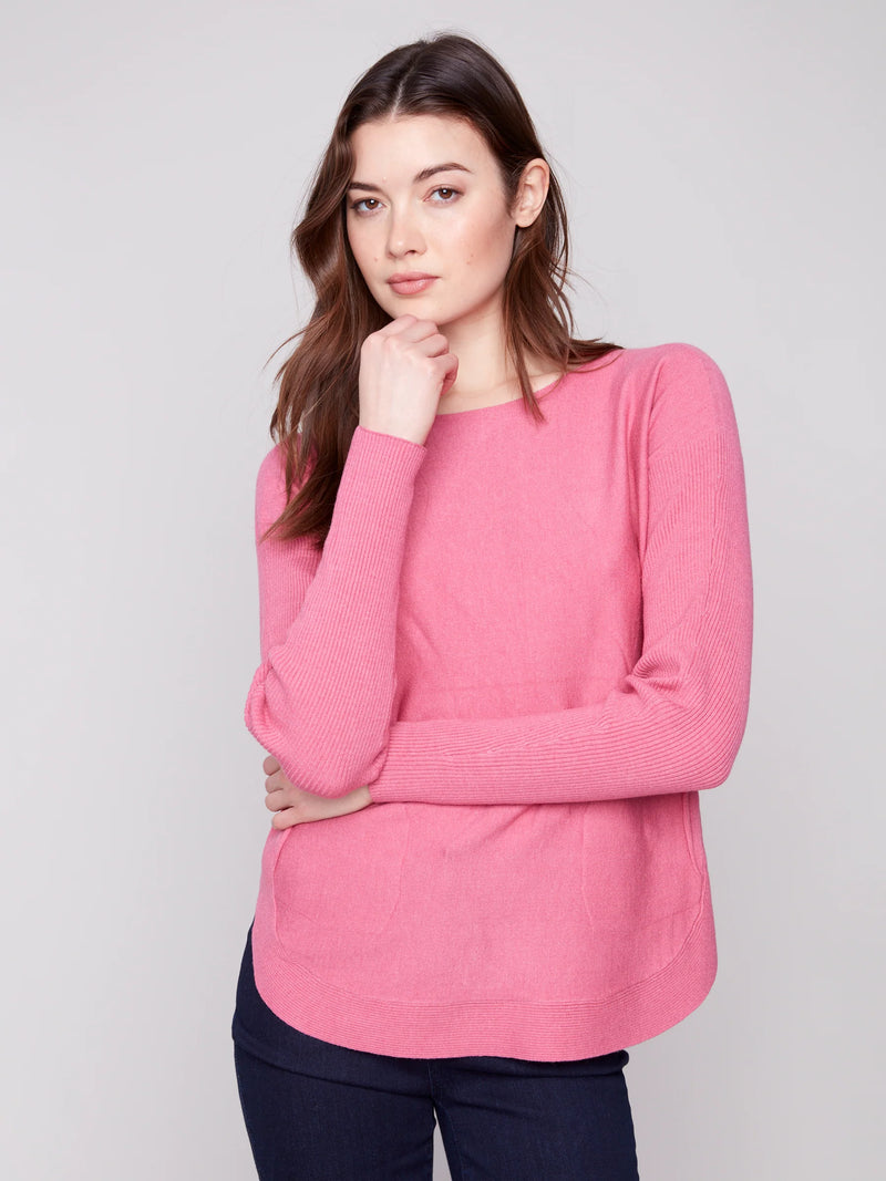 Charlie B. Lace Up Back Detail Lightweight Sweater Style C2170Z - Heather Rose