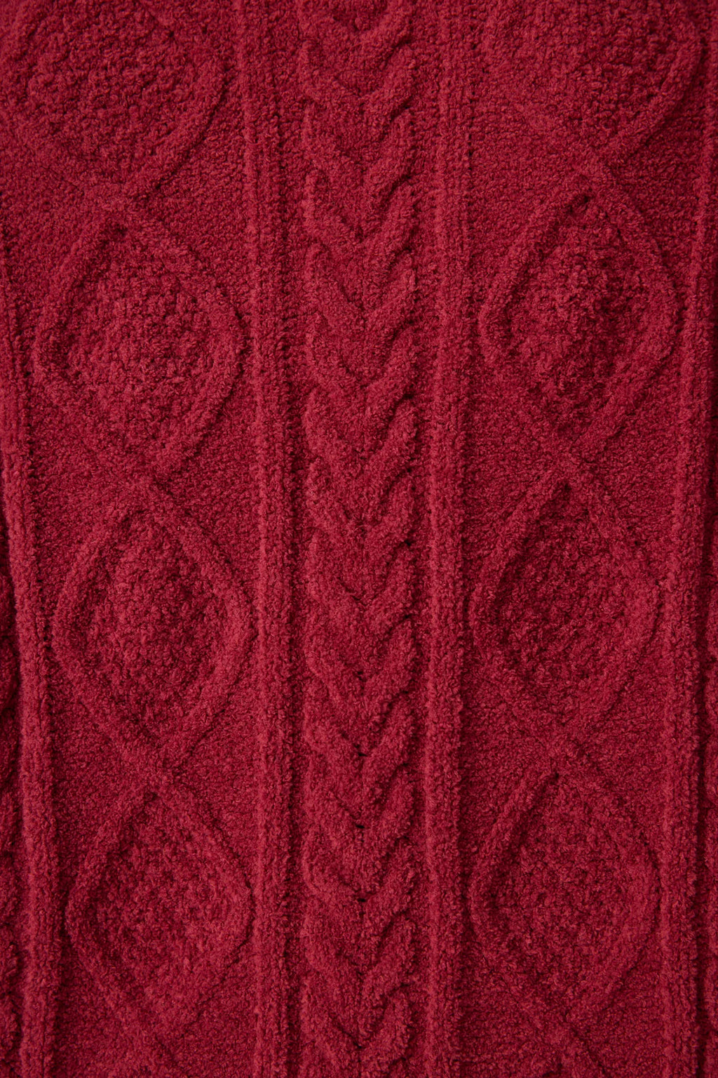 Cozy, cushioned, and cable-knit cute. With plush fuzzy lining, these ruby-red chenille slippers wrap your feet in ultra-soft comfort like a warm hug, designed with a foldover cuff and cable stitching for that signature holiday touch. They feature a durable traction sole so you can lounge, step outside, or dash to the mailbox without a second thought—pair them with your Cable Chenille set for top-to-toe coziness.