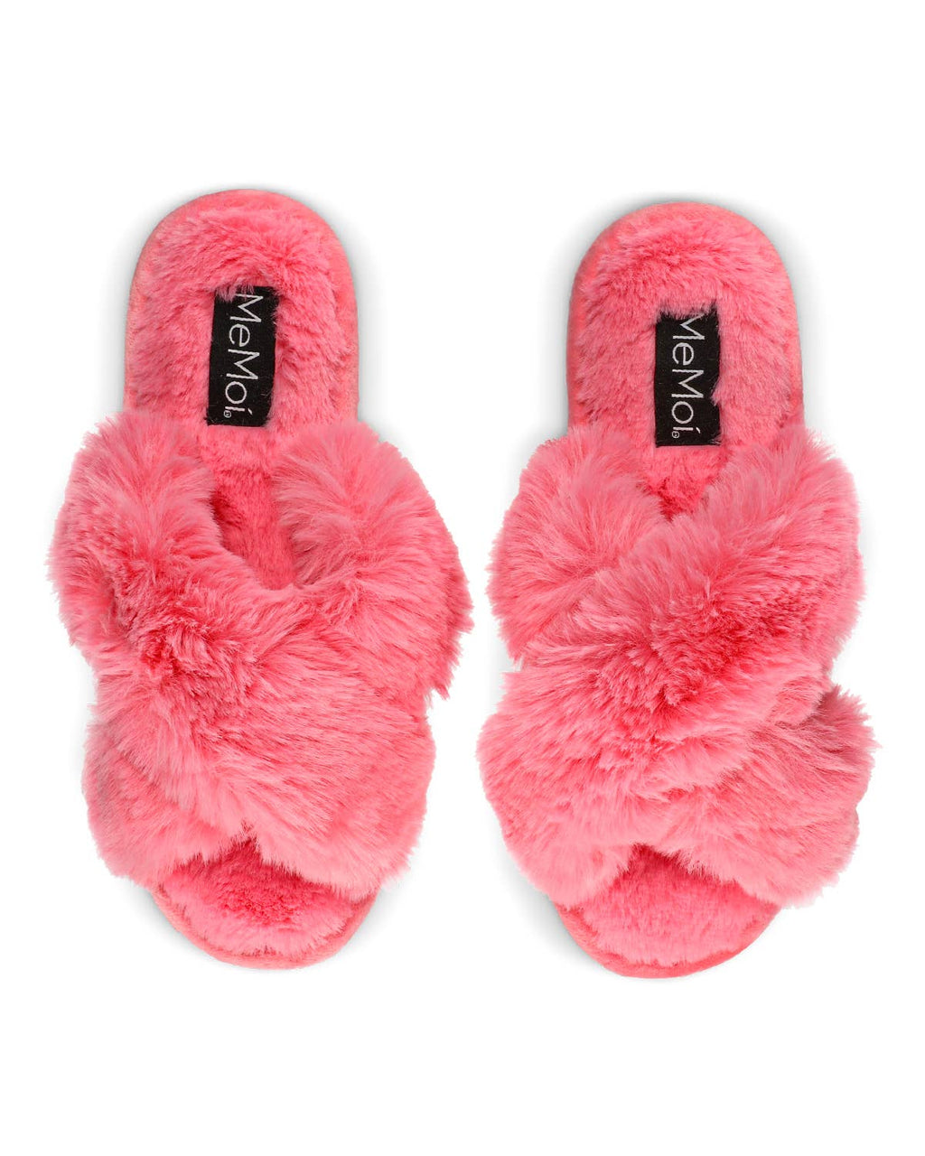Me Moi Beverly Faux Fur Open Toe Plush Slippers - Disco Pink