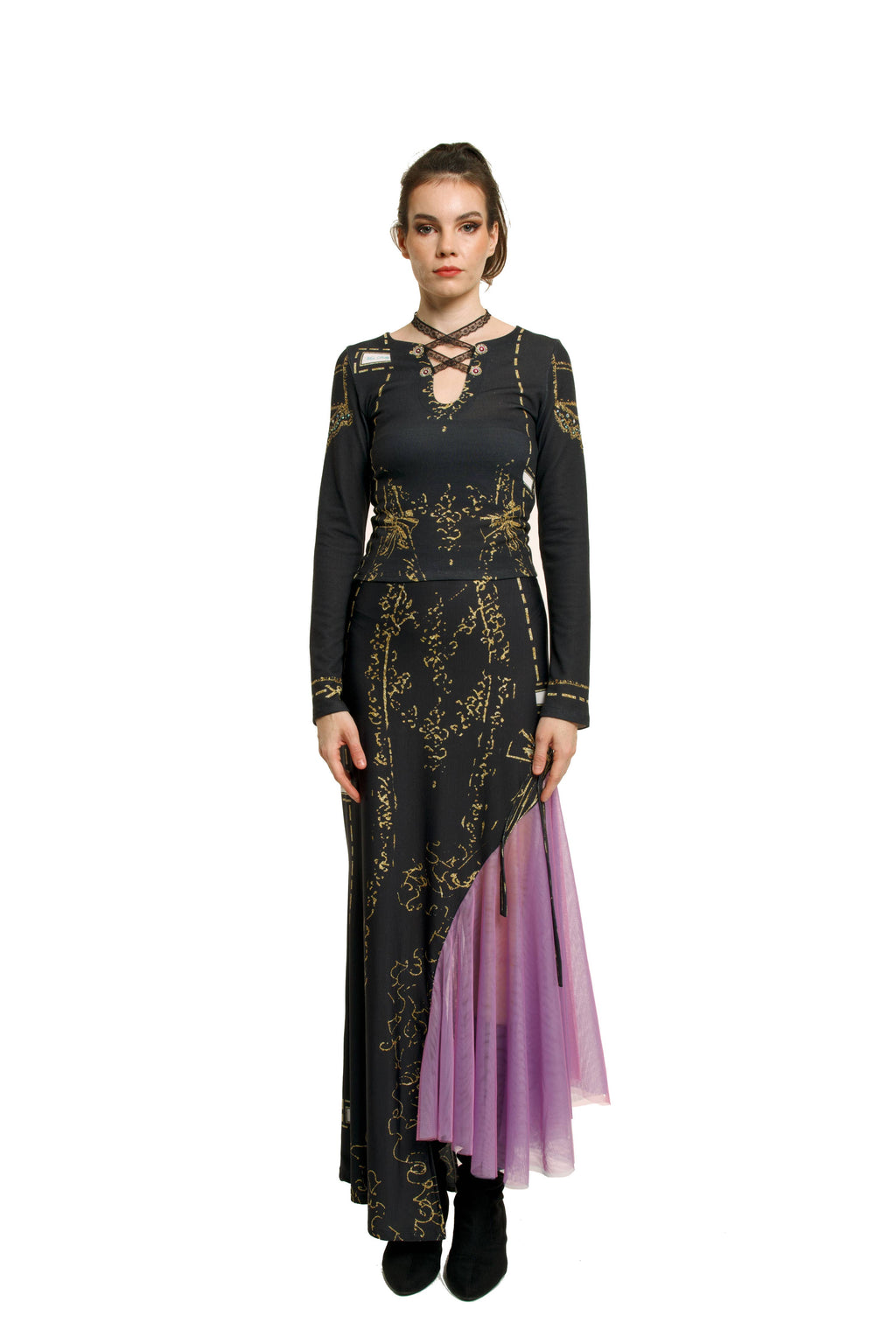 Elevate your wardrobe with the unique charm of our Paper Dolls Rhinestone Embellished Shirt from the Autumn/Winter collection. Inspired by the whimsical artistry of paper doll cut-outs, this top features intricate illustrations and is adorned with delicate hand-made rhinestone embellishments throughout, adding a touch of elegance to every outfit. Crafted for a slim fit, the shirt contours to your silhouette while ensuring comfort and sophistication. The model, standing at 5'7", wears a Size S/M, showcasing its true-to-size design. Perfect for pairing with skirts or pants from the same collection, this shirt is a versatile statement piece that embodies artful style. Add a dash of luxury and playfulness to your ensemble with this standout piece from our exclusive collection.
